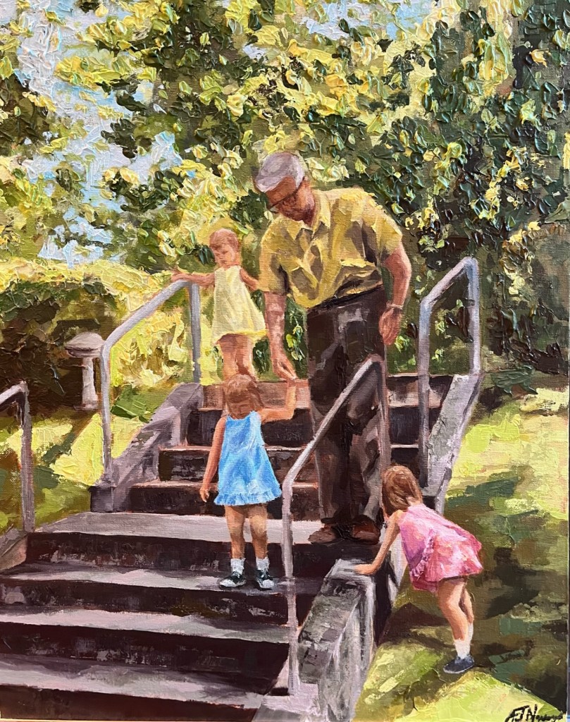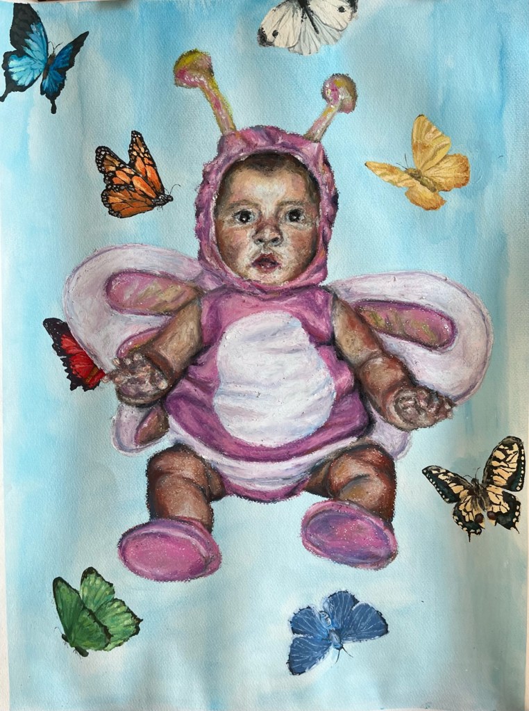 In this collection, I combine my art with the art of my long-since passed family members, using their photography as references to bring their memories to life. I also examine my role in this timeline, seeing my family’s features and traditions integrate their way into my life.